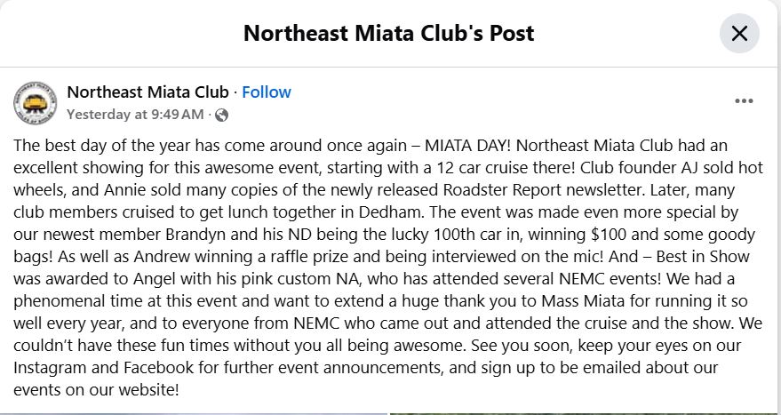 Photos from the Northeast Miata Club